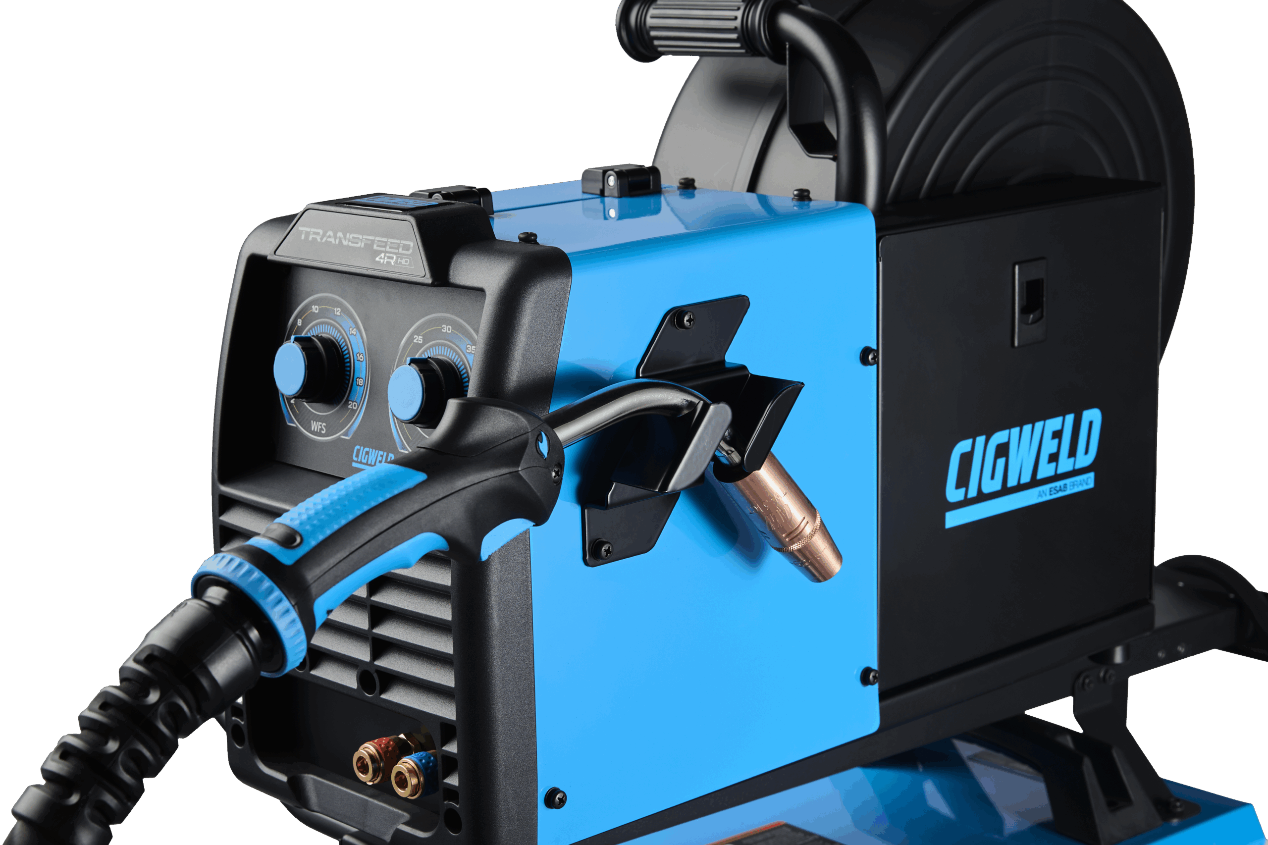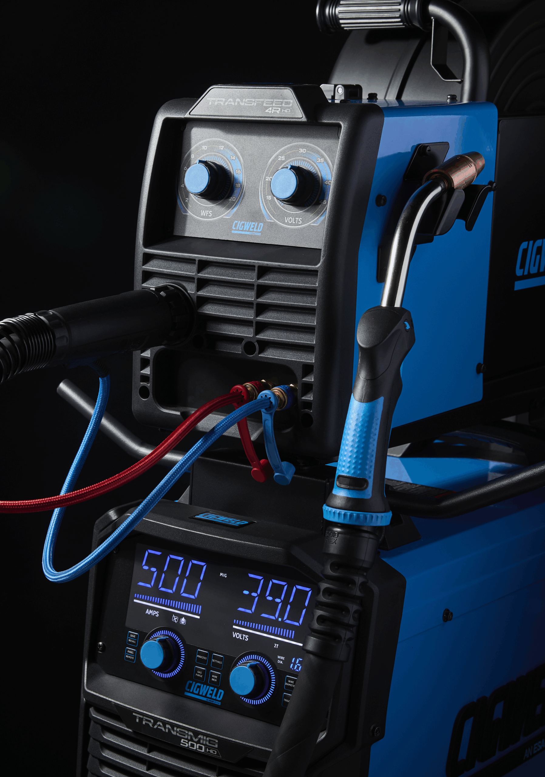 To take it a step further, the Transmig 500HD seamlessly connects with the Transfeed 4R HD Wirefeeder (included in the plant package), offering a 4 Roll Geared Wire Drive system that handles 200mm and 300mm wire spools with absolute precision.