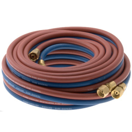 Blue/Red (Oxy/Acetylene) rubber hose with 5mm inside diameter. Ready cut lengths complete with 5/8" brass fittings. Conforms to Australian Standard.