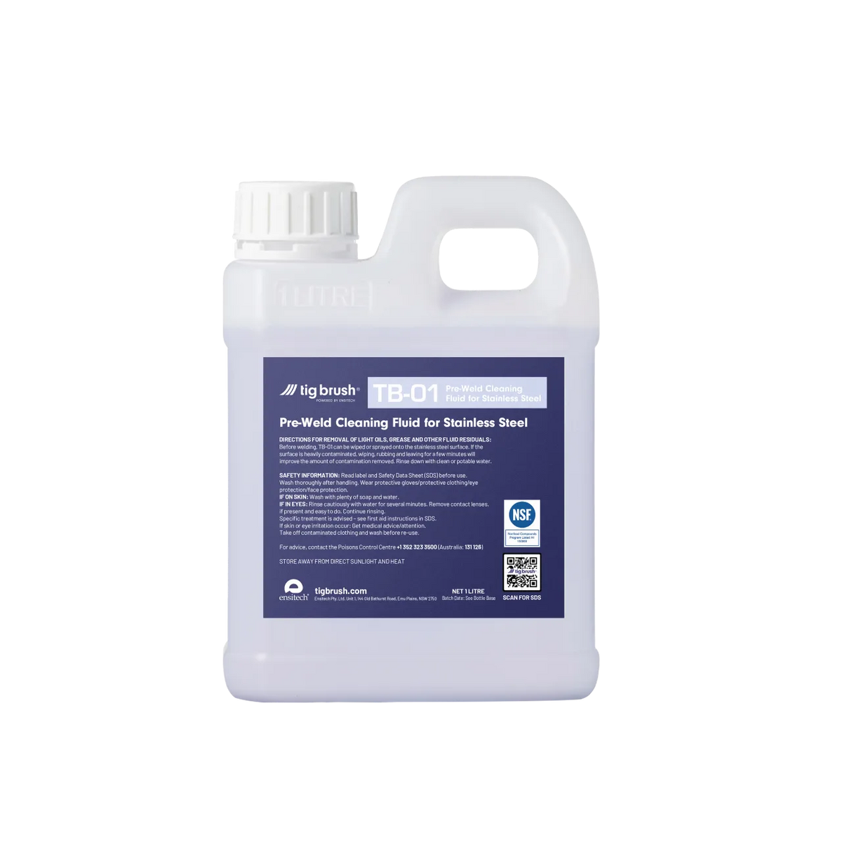 This fluid is specially formulated to pre-clean the metal surface. Cleaning the weld areas thoroughly before welding helps ensure a perfect finish by removing residues such as cutting oils or adhesives that may result in white marks appearing after welding.