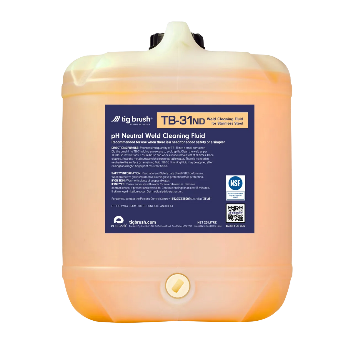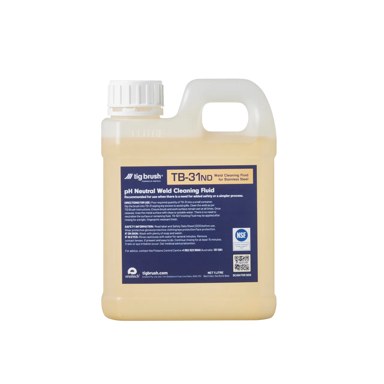 A breakthrough for TIG Brush technology was the launch in 2011 of Ensitech's TB-31ND Neutral Weld Cleaning Fluid for Stainless Steel. Developed in response to market demand for a cleaning fluid that was not only non-toxic, but actually pH neutral, the new, patented fluid is based on unique chemistry. It is especially suited to the needs of sensitive environments such as food and beverage, pharmaceutical and petrochemical industries. This ability to clean stainless steel welds and surfaces using a completely pH neutral fluid represents a major advancement for industry.